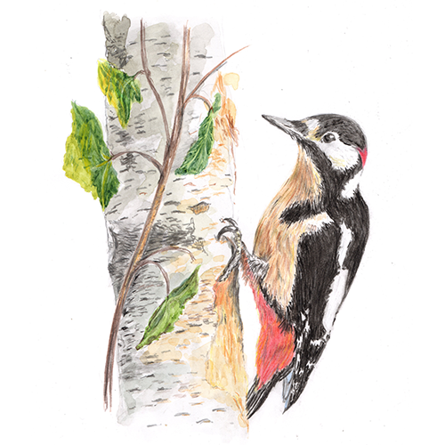 Greater Spotted Woodpecker 28 x 21 cm A4 Mixed Media